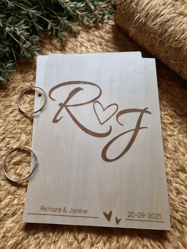 Een gepersonaliseerd gastenboek om je (bruilofts)gasten iets in te laten schrijven.